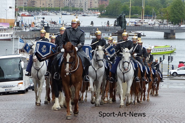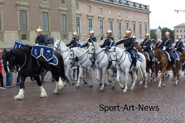 Täglich um 12:15 Uhr (sonntags um 13:15 Uhr) reitet die Wachparade durch die Gassen der Altstadt auf der Insel Stadsholmen zum königlichen Schloss.