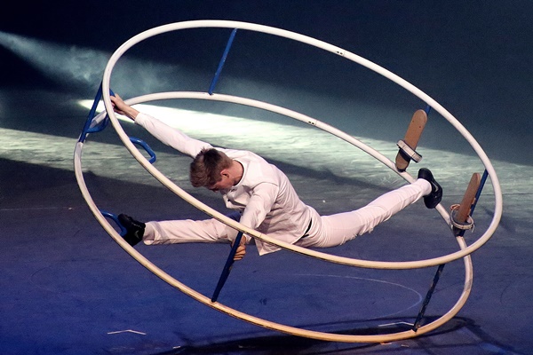 Weltmeister im Rhönradturnen Marcel Schawo nach seiner Darbietung
