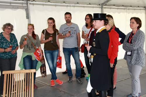 Den Ehrenpreis für den Sieger dieser 3-Sterne-Springprüfung stiftet Maike Kohl-Richter und gratuliert dem Sieger persönlich in Erinnerung an den verstorbenen Alt-Bundeskanzler Helmut Kohl.